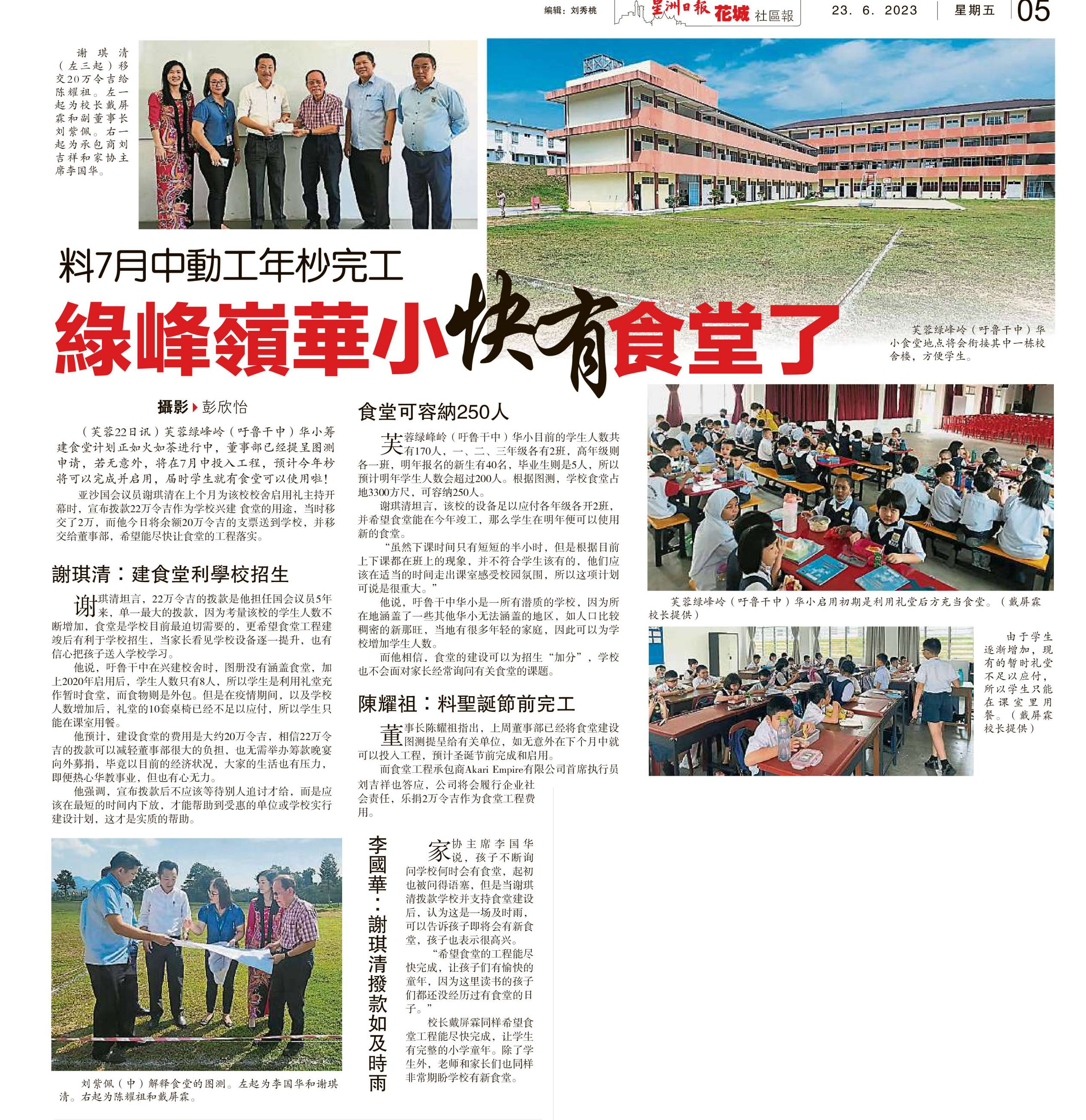 料7月中动工年杪完工 绿峰岭华小快有食堂