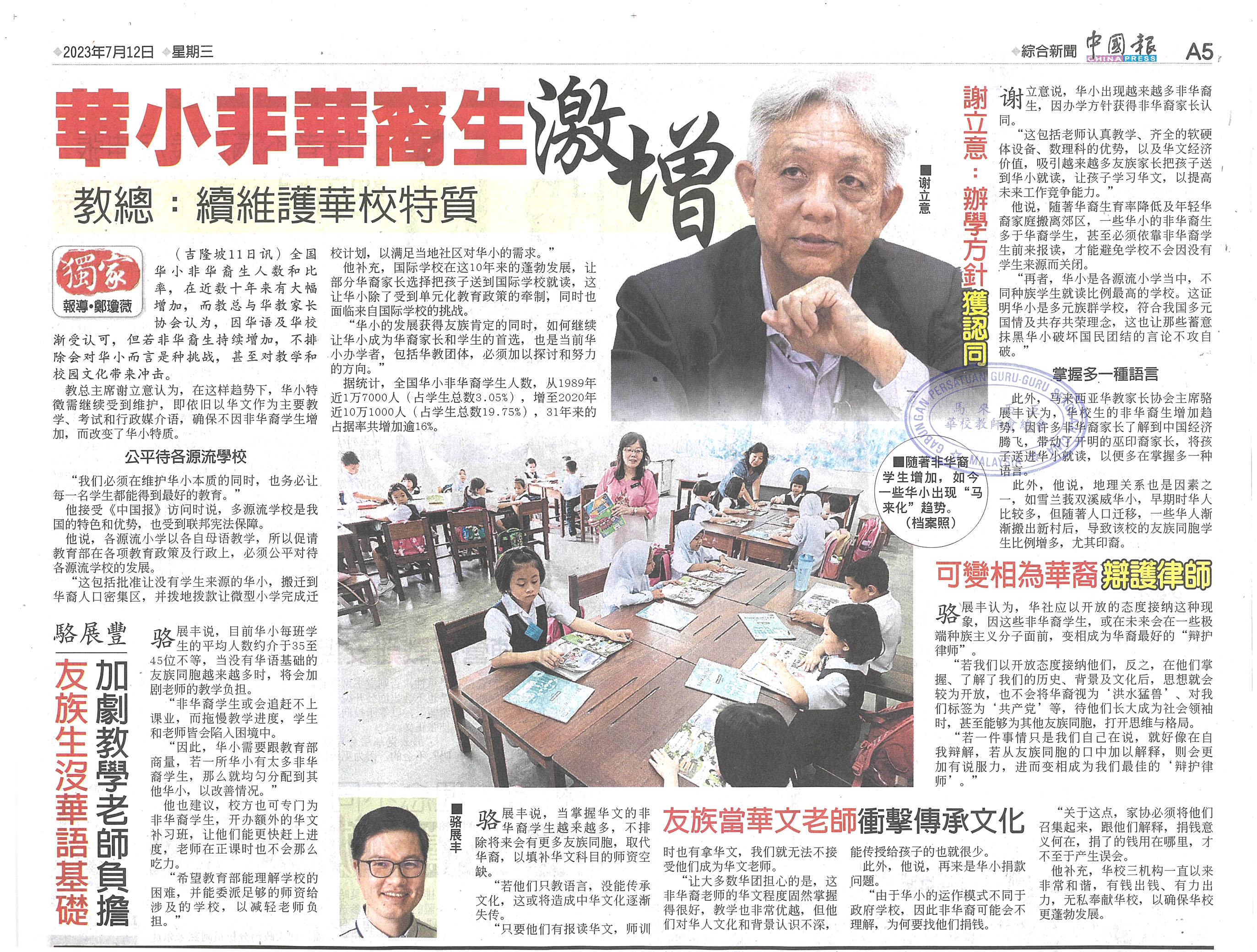 华小非华裔生激增 教总:续维护华校特质