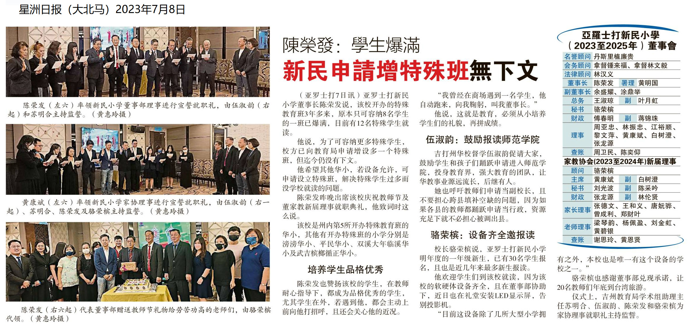 陈荣发:学生爆满 新民申请增特殊班无下文