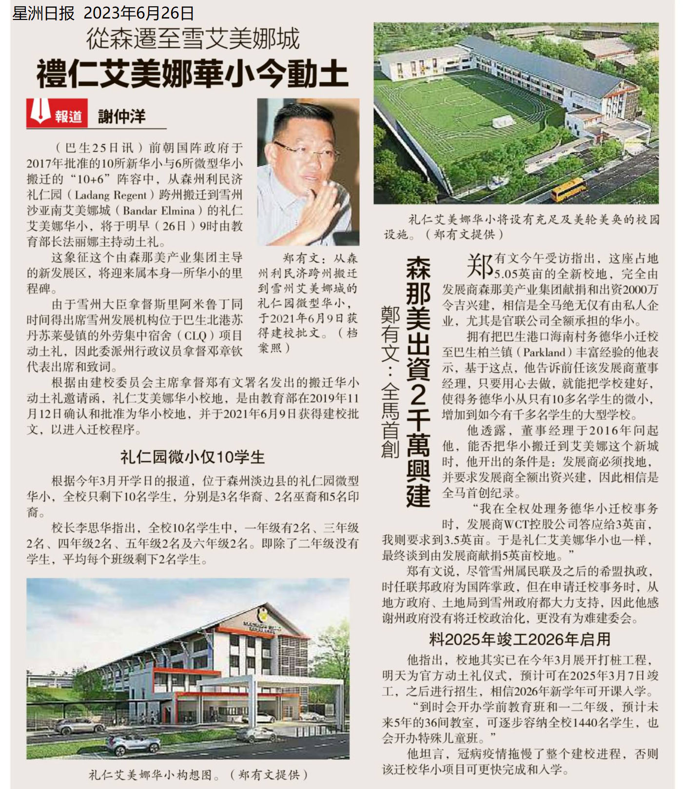 从森迁至雪艾美娜城 礼仁园艾美娜华小今动土