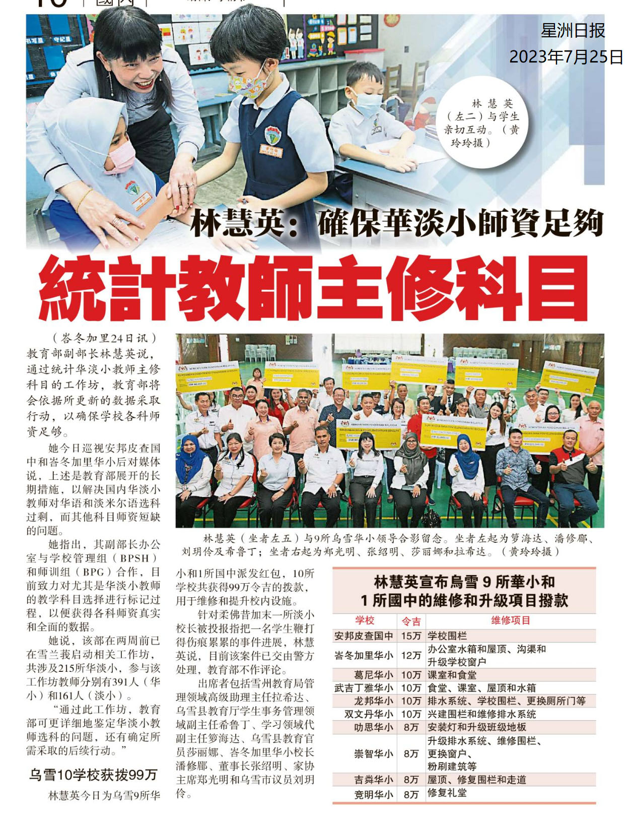 林慧英:确保华淡小师资足够 统计教师主修科目