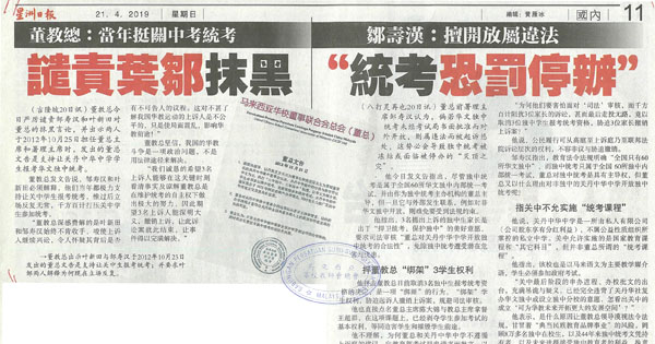 王仕发:国文与中文名称不符 “家总蒙骗华社”