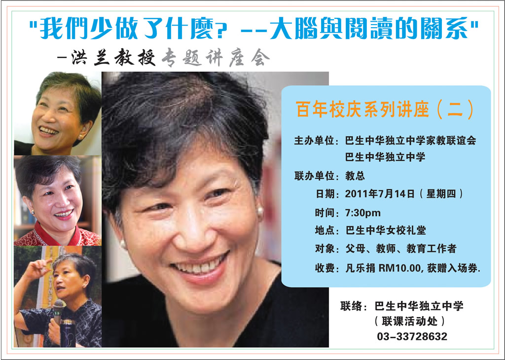 联办: 教总《孩子》双月刊、巴生中华独中、巴生中华独中家教联谊会 讲座会详情 乐捐RM10可获得入场券一张。 |