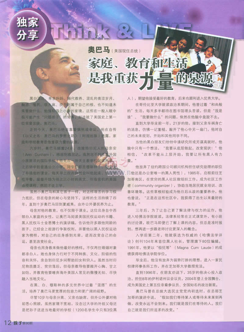 奥巴马(美国现任总统)家庭、教育和生活是力量的泉源 |