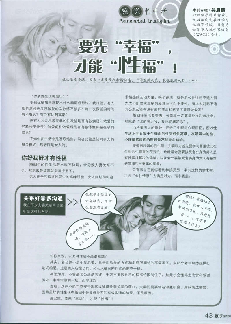 除了给孩子“压岁钱”这短暂的快乐外,让我们不妨随着青春的气息,想一想我们所扮演的父母角色,哪里称职了?哪里还要加强? |