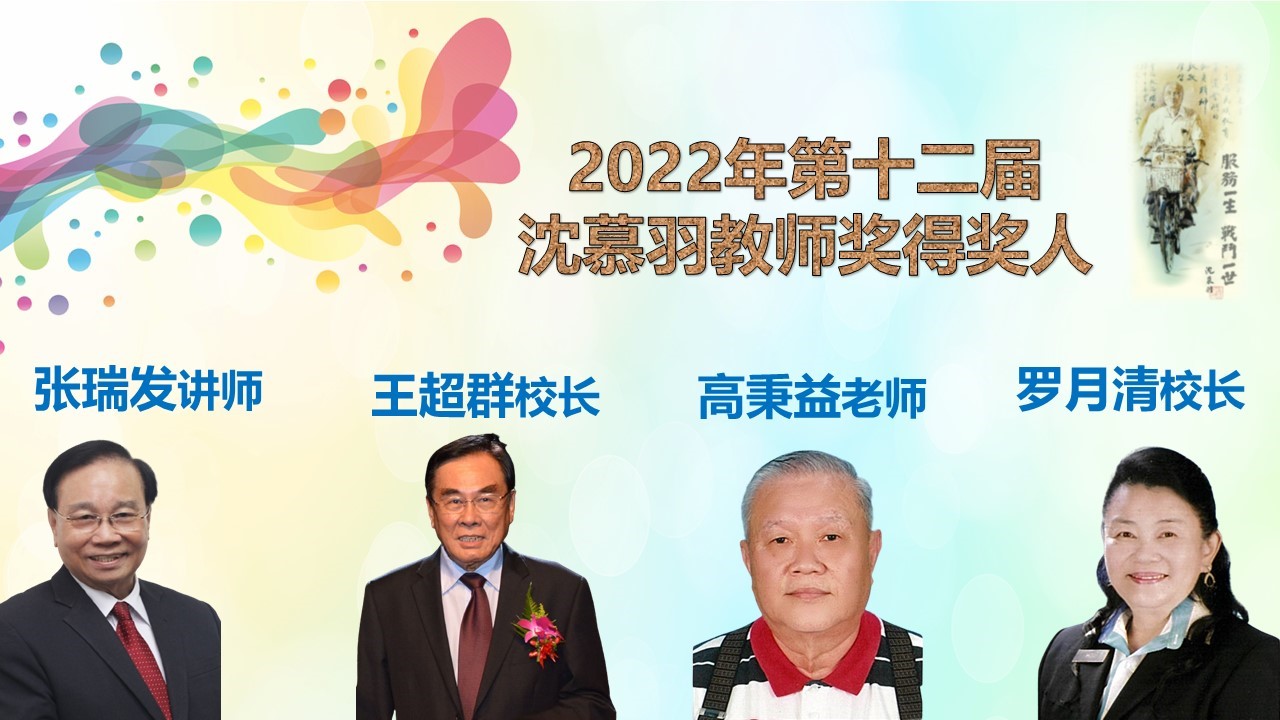 2022年第十二届沈慕羽教师奖共有4位得奖人,他们是王超群校长、张瑞发讲师、高秉益老师和罗月清校长。